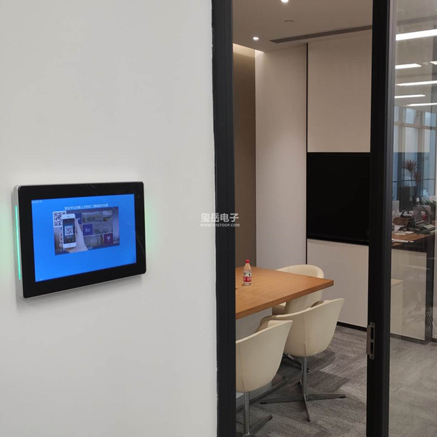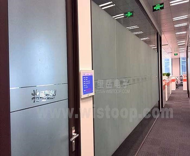 上海云月在七樓有共計(jì)8間會(huì)議室,全部納入到WISTOOP會(huì)議室智能預(yù)約管理系統(tǒng)中進(jìn)行管理。采用了WISTOOP 10寸雙側(cè)燈帶會(huì)議信息發(fā)布一體機(jī)。顯示界面設(shè)計(jì)了分屏顯示,左右界面各顯示一間會(huì)議室的會(huì)議信息。有會(huì)議安排時(shí),一體機(jī)兩側(cè)的燈帶呈現(xiàn)為紅色,無會(huì)議時(shí)自動(dòng)變成綠色。一體機(jī)壁掛安裝在每間會(huì)議室的門口,外觀大氣簡(jiǎn)潔,展示效果震撼。