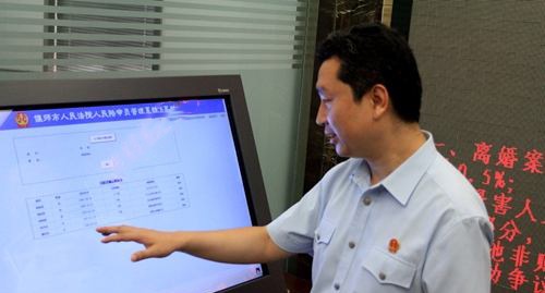 法庭大堂:擺放壁掛液晶一體機(jī)提供市民觀看法律相關(guān)宣傳片,法律政策條例的信息內(nèi)容展示??蓴[放觸摸查詢一體機(jī),提供給市民自助查詢相關(guān)信息,提升法律服務(wù)與市民的互動交流。