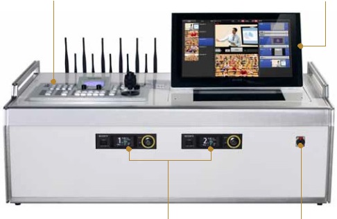 - 節(jié)目制作主機(jī)最多可以支持 4 個(gè)無線采集傳輸單 元,通過創(chuàng)新性的無線傳輸控制方式,節(jié)目制作主 機(jī)可以同時(shí)接收所有機(jī)位的高清視頻信號及音頻信 號,并對各個(gè)機(jī)位的攝像機(jī)及云臺進(jìn)行遠(yuǎn)程控制。